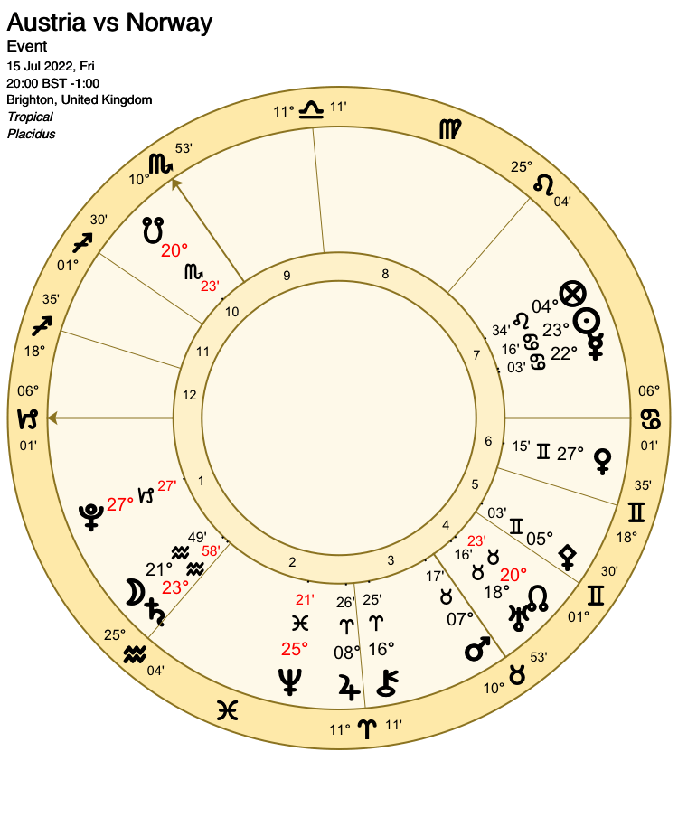 Mars hovers near to the 4th house cusp (signifying Finland’s hopes for victory quashed by Germany), but may be a little too far from the cusp to be significant (an orb of 1-2 degrees is preferred).
