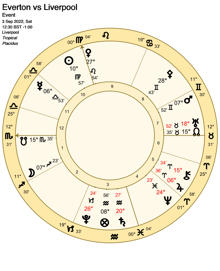 The antiscion of Mercury, Lord 7), also in the 4th house at 05 Aries 44, is a little too far from the cusp to be conclusive but adds a measure of support to Tottenham: The signs are that the visitors are prepared to give as good as they get.