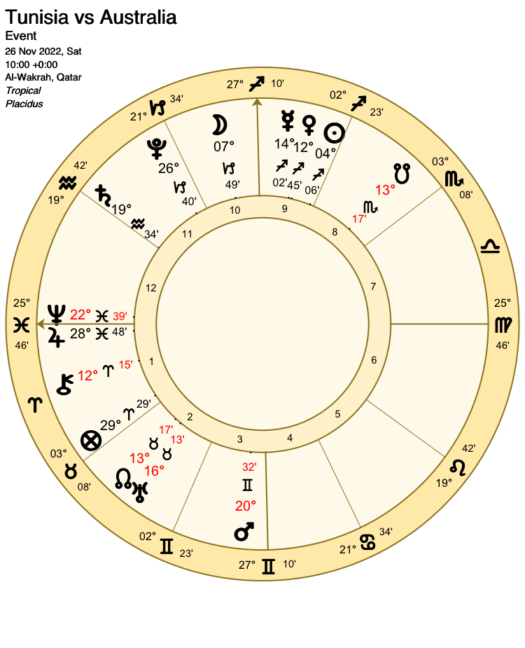 As favourites, Portugal are awarded the 1st house and its ruler, the Sun. The 10th house and its ruler Venus act as their co-significators.