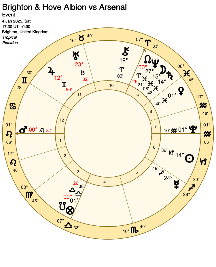In this chart, Chelsea are awarded Mercury (ruler of the 1st house and also the 10th house, the house of victory for the favourites).