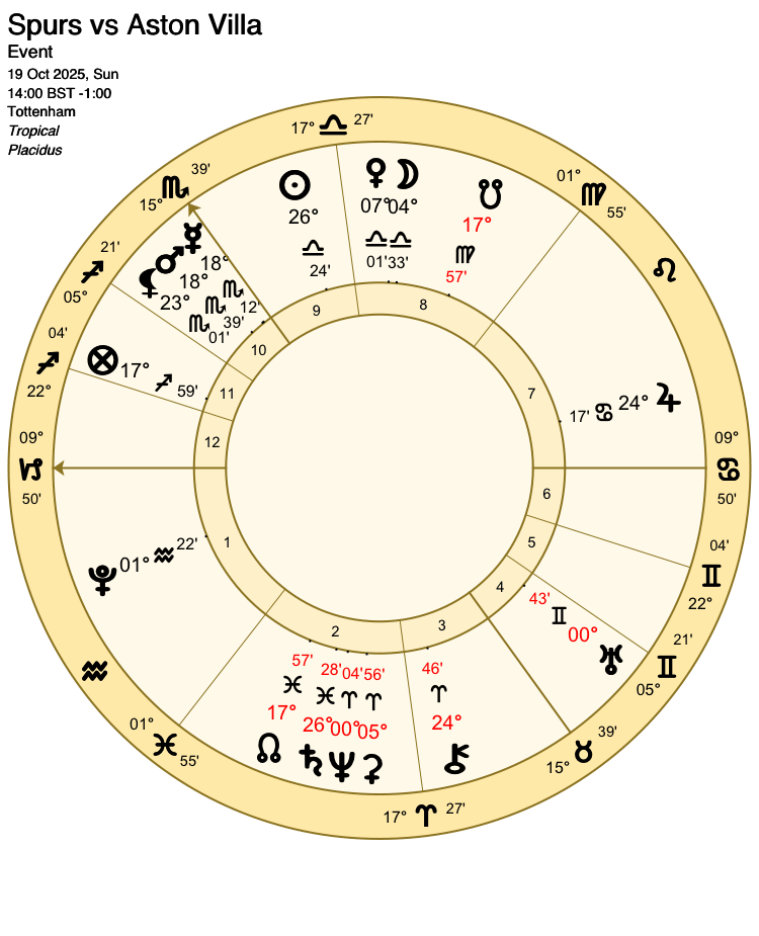 Astrological Football Forecast for the Premier League: Sunday 19th October 2025 Spurs vs Aston Villa
