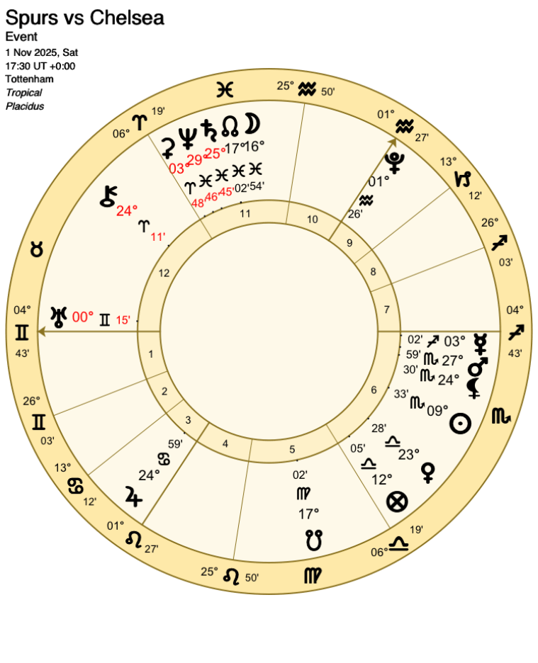 Astrological Football Forecast for the Premier League: 1st November 2025 Tottenham Hotspur vs Chelsea