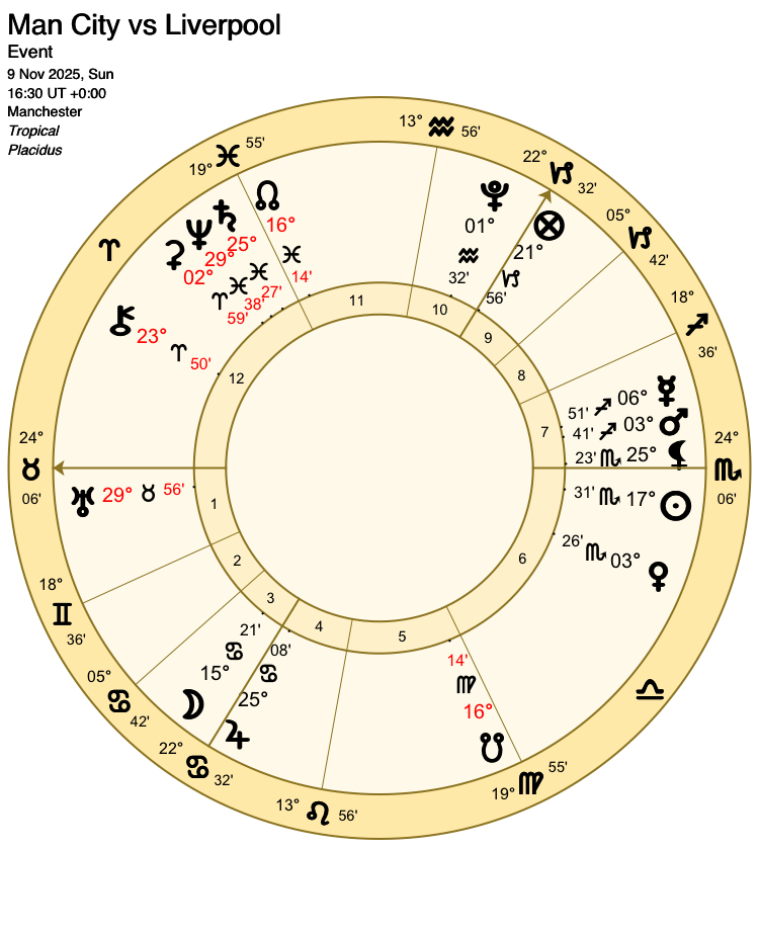 Astrological Football Forecast for the Premier League 9th November 2025: Manchester City vs Liverpool