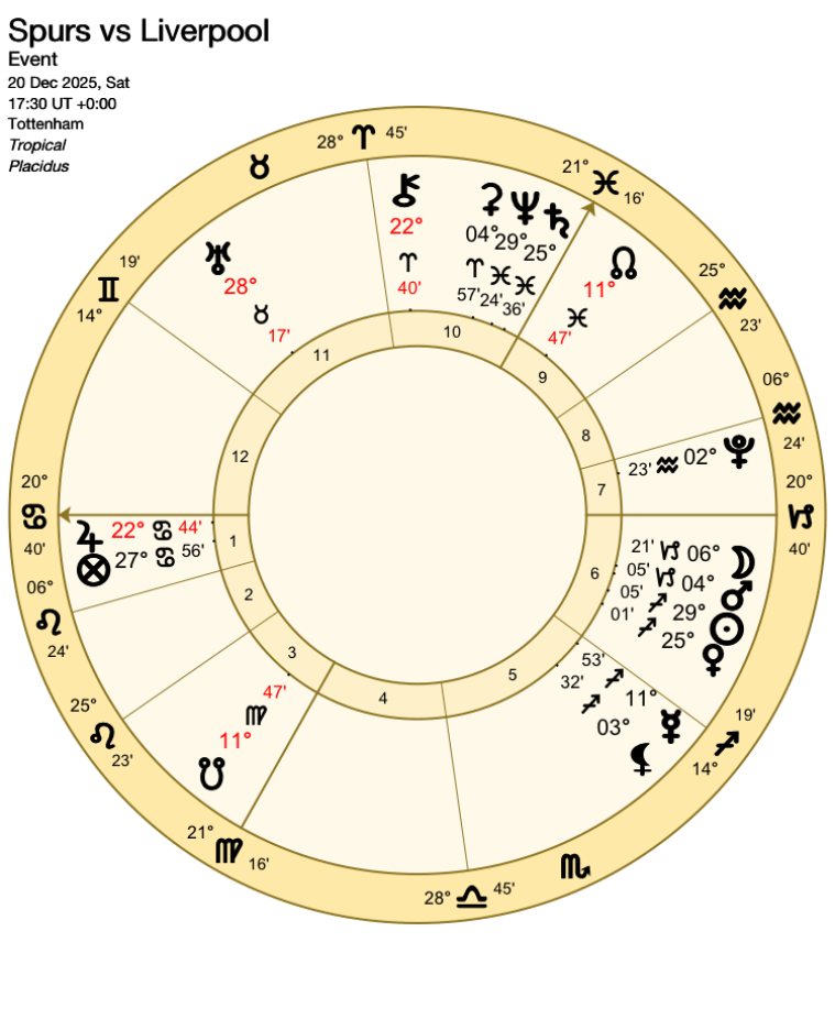 Astrological Football Forecast for the Premier League: 20th December 2025 Spurs vs Liverpool