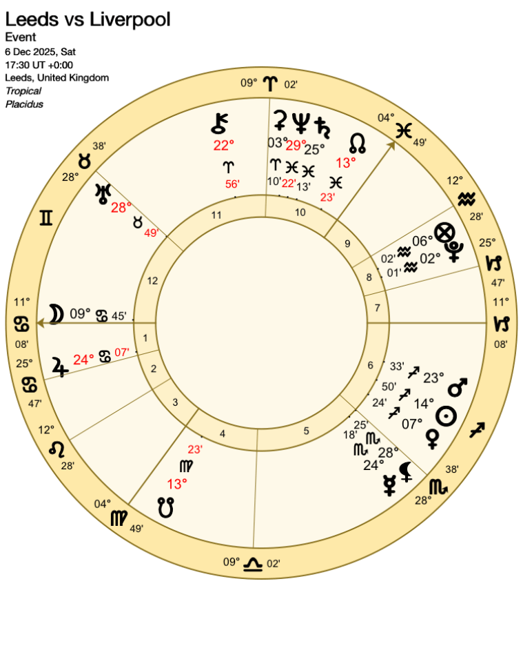 Astrological Football Forecast for the Premier League: Saturday 6th December 2025 Leeds vs Liverpool