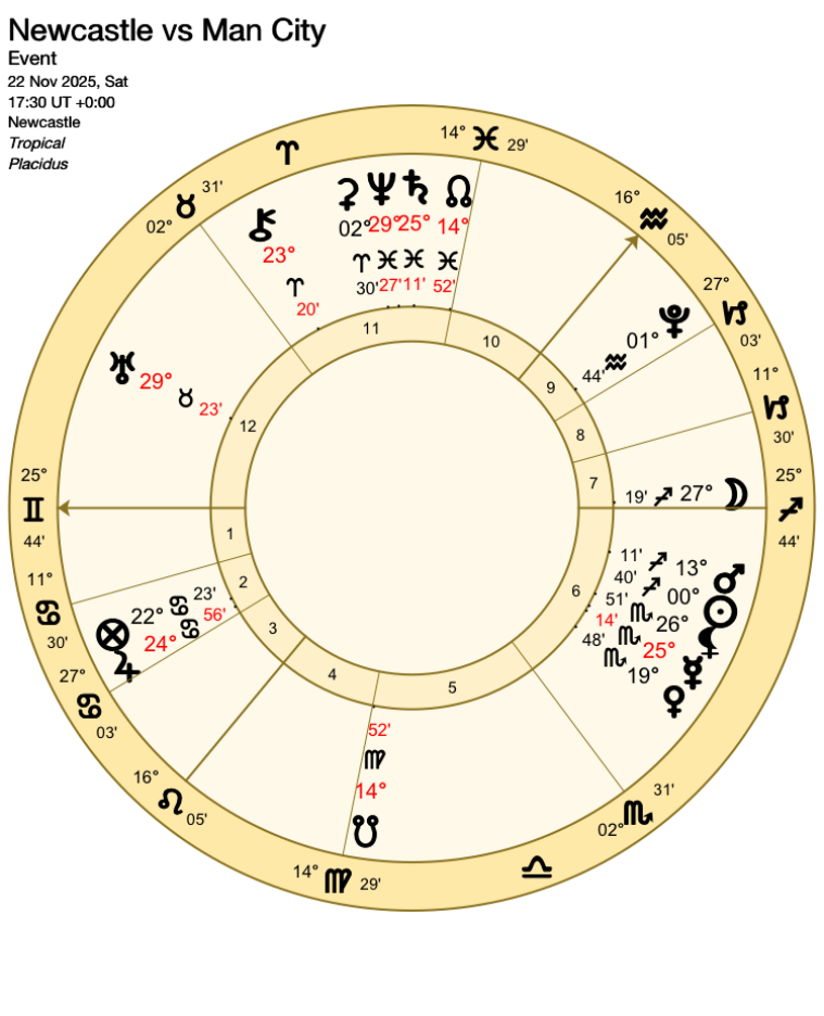 Astrological Football Forecast for the Premier League: Saturday 22nd November 2025 Newcastle United vs Manchester City