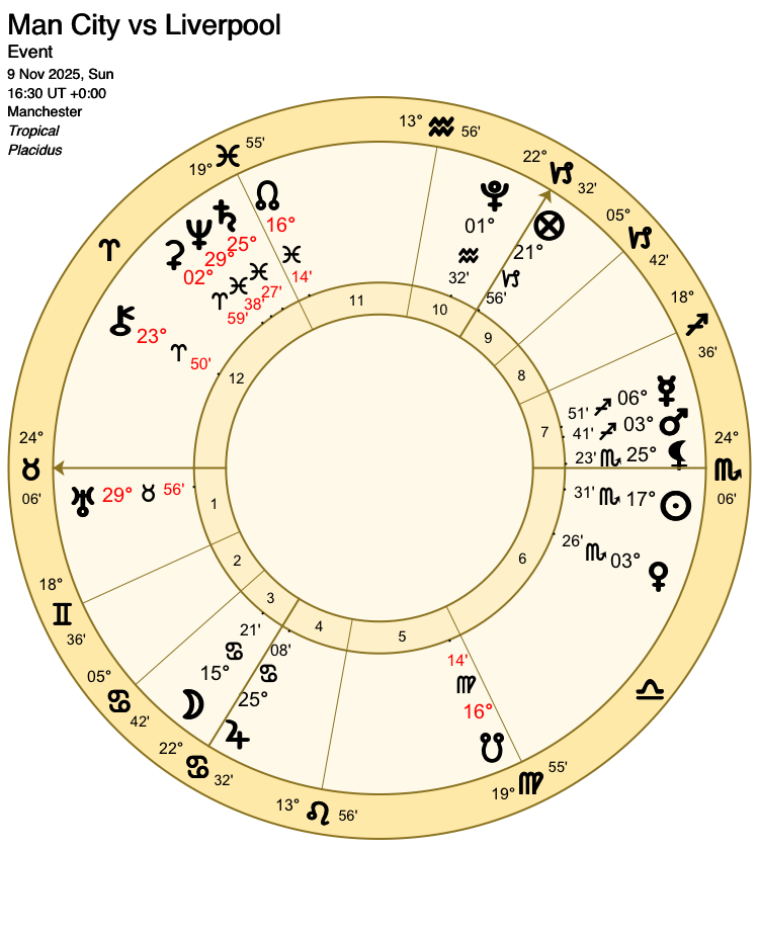 Astrological Football Forecast for the Premier League 9th November 2025: Manchester City vs Liverpool