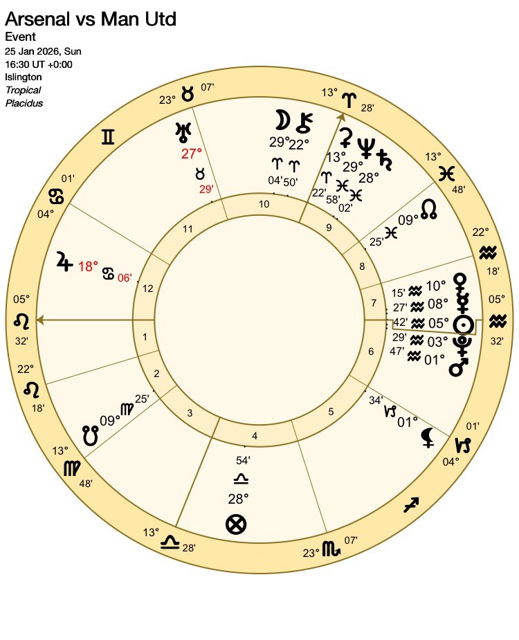 Astrological Football Forecast for the Premier League: Sunday 25th January 2026 Arsenal vs Manchester United