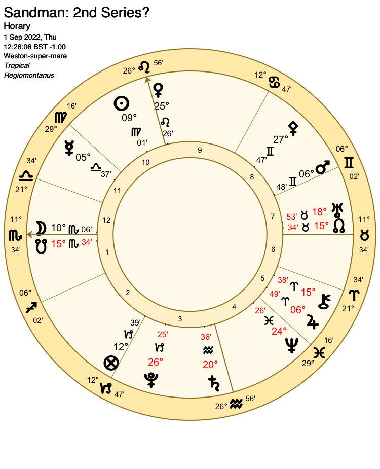 Horary astrology offers insight into all manner of questions, so I asked, “Will ‘The Sandman’ return for a second series?”.