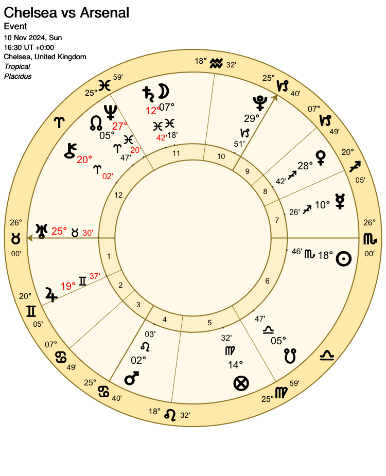 As favourites, Chelsea are denoted by the 1st house, Mars (1st house ruler) and Saturn (ruler of the 10th house; the house of victory for the favourites).