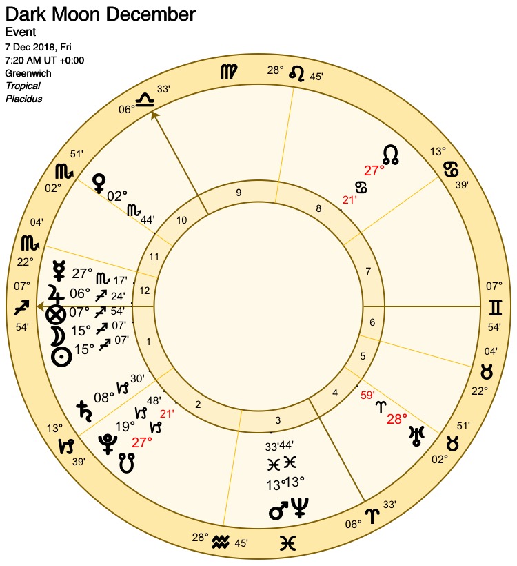 January’s Dark Moon occurs at 15 degrees 25, in the second decan of Capricorn (exact at 01:28 am GMT).